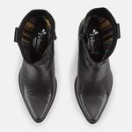 Laredo E180: Botas de cowboy em pele vintage preta macia com bordados no cano. Concebidas com um salto de 7 cm de altura, estas botas oferecem um estilo ocidental intemporal e uma elegância refinada para qualquer ocasião.